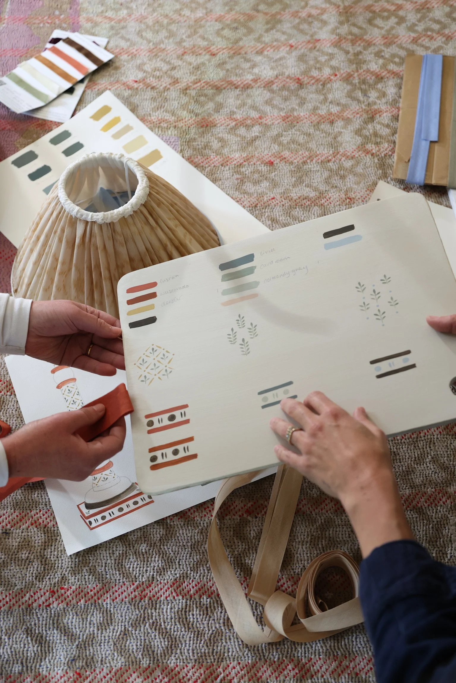 Chloe: We’d admired each other’s work for a while, and light felt like the natural meeting point. I brought the fabrics - their colour, history, and texture - and Laura brought a painter’s eye and the kind of bespoke detail that only comes from something painted by hand. Together, the lamps became something neither of us could have made alone.